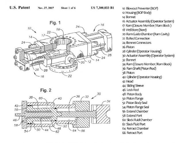 Patent drawing of the Cameron EVO BOP (a drill part).